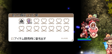七月フリマ8レポート Days-Breidablik- 2017/11/26 Comments(2) 月に一度のおたのしみ・七月フリマのレポートです(*´꒳`人)今回の開催地は迷宮の森01全域!長くなるので続きは折りたたみますレポートも8回目なのでそろそろまとめ記事でも用意しようかしら 今回はリプレイ録画してたのでSSを撮影し忘れても大丈夫! 22時から録画したけどもうちょっとはやくてもよかったかなー開始前から来てくださってる方も多かった気がする私は入り口すぐの場所でハエと蝶の露店をやっていました(*´꒳`人)両方共OC10価格で販売~ハエ重くてカートにあんまり入れられなかった残念1時間で販売したハエは2500個、蝶は20個くらいハエの補充中は2PCアコで看板を出していました後半30分はMAP内でハエ販売があったっぽいのでゆるやかな売れ行き複数あると良いですね(๑•̀ㅂ•́)و✧2PC側でMAP内も見て回ったら露店の位置が面白かったですMAPの隅っことか木の中とかフリーダム(*´ェ`*)目玉の7z露店は移動しながら展開とか何それ楽しい最後は入り口MAPで開かれたので久しぶりに買えました、やったぜアフターイベントは「意味なしアリスを追い詰めろ」迷宮の森01で歩いて逃げるセカコスきゃわわなABちゃんを捕まえる追いかけっこそしてMAP内で起きる事件…リプレイを確認するとイベント開始14分の時点では元気に歩いてるABさんの姿を発見、15分の時点で「誰か死んでなかった?」のPTチャットログ有り…この1分間でお銀さんに何が起きたのか(((゚□゚;)))不死服装備で死体を演じるお銀さん、さすがです今回は珍しく湾で参加してる人がいなかったので誰も起こせなかった迷子フリマ&アフターイベントに参加して下さったみなさまありがとうございました!リセちゃんはじめ七月ギルドのみんなお疲れ様ですまた次回の七月フリマでお会いしましょう(*´꒳`*)ノシエリちゃんメカニックの和む1枚カートと頭装備の位置を合わせて座り直してくれた、エリちゃんすき(*´ェ`*)リプレイを見直して気付く、離席中に話しかけられてたああコロッケじゃないです_(:3 」∠)_最近はキノコと鶏肉のクリームコロッケが好きです今回のフリマでは2PC看板係かポタ補助係をするかなー?と思ってトライアルでアコライトを作っていたのでした殴り倒すのが楽しくてオーラに。設営開始時間から参加できればどこが足りてないとかわかりそうなんだけど時間がきびしいなあ次回はそのへんお手伝いしたいところ…バナーデザインも考えておかねばねー!