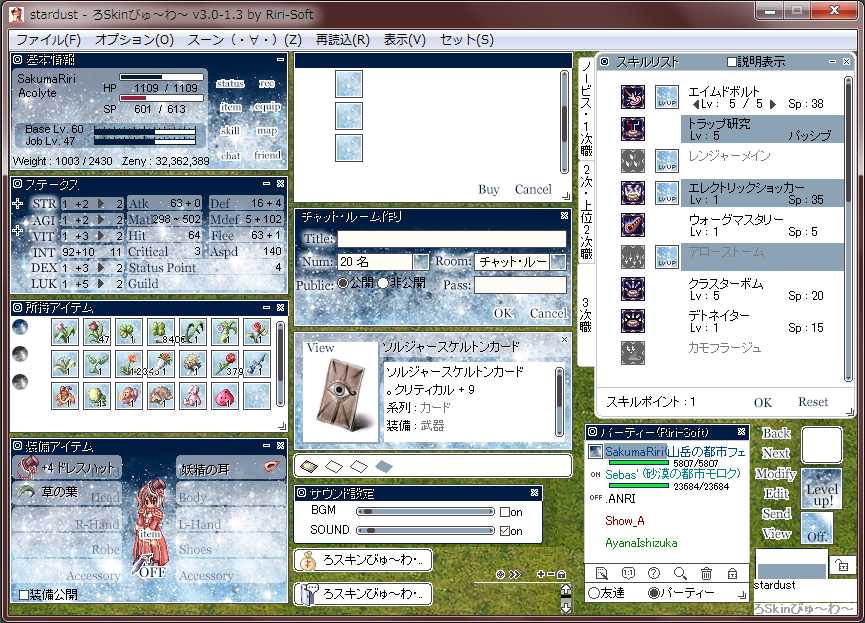20 stardust Skin 2016/10/25 Comments(0) 星空のような宇宙のような・Optionフォルダ内に差し替え用の倉庫タブつき・(デフォルトは英語表記・オプションは日本語表記です)2016/10/25 公開2017/07/30 個人タブパーツ追加・修正2018/05/13 メニューアイコン・倉庫タブ追加2019/06/02 ワールド倉庫対応・スキン使用の際に守っていただきたいこと・以下の行為は禁止しています・加工(色替え・サイズ変更含む)・再配布・他の作者様のスキンパーツと合成・ROスキン以外での使用Sample / Download