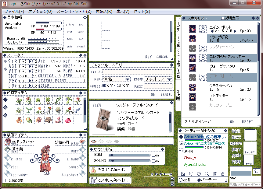 19 logo Skin 2016/08/01 Comments(0) 手書きロゴ風スキン。・Optionフォルダ内に差し替え用の倉庫タブつき・(デフォルトは英語表記・オプションは日本語表記です)2016/08/01 公開2016/10/25 コスチューム窓修正・inventoryファイル追加2017/07/30 リプレイ対応・パーツ修正2018/05/13 メニューアイコン・倉庫タブ追加2019/06/02 ワールド倉庫対応・スキン使用の際に守っていただきたいこと・以下の行為は禁止しています・加工(色替え・サイズ変更含む)・再配布・他の作者様のスキンパーツと合成・ROスキン以外での使用Sample / Download